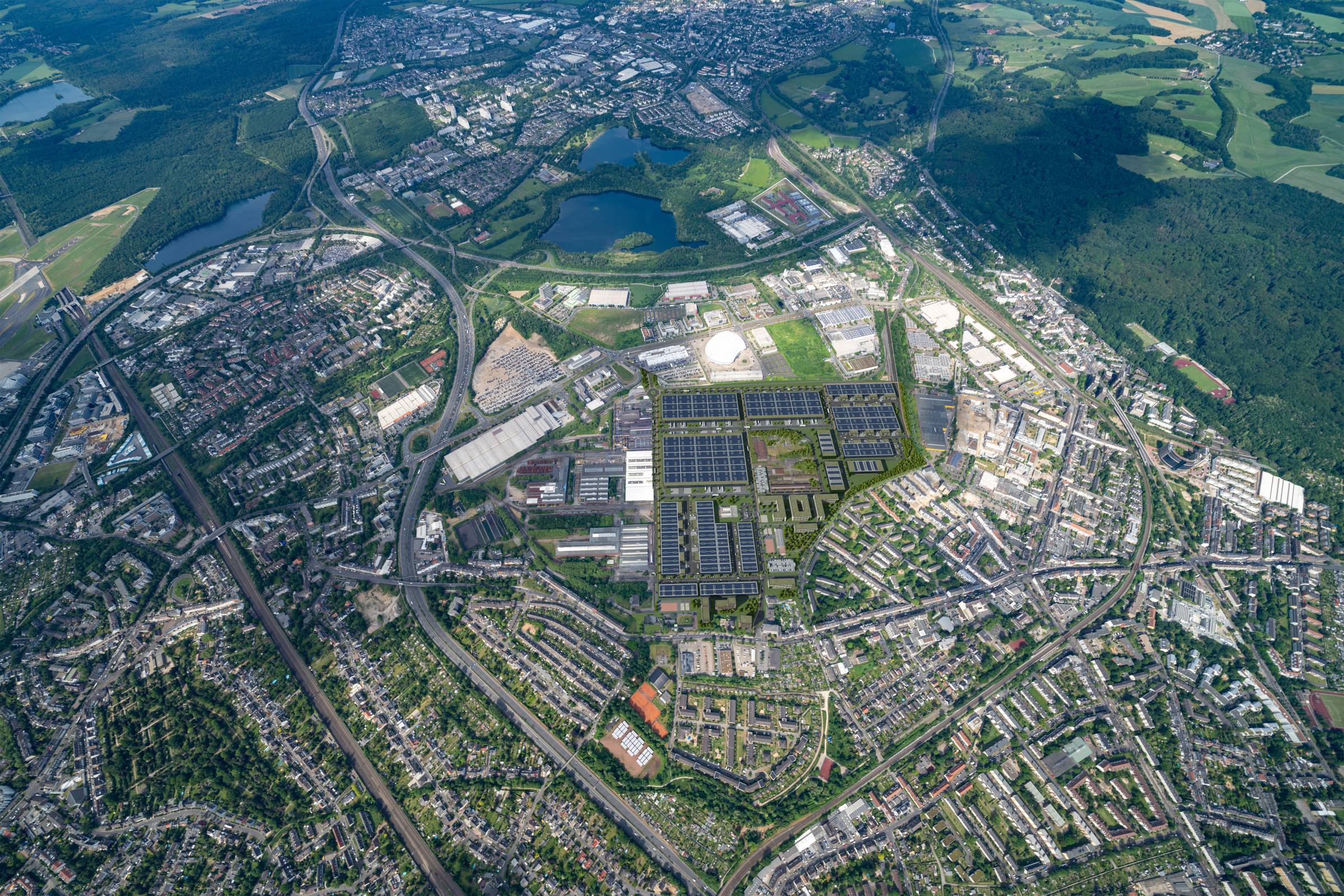 The CTP site’s prime location in northern Düsseldorf offers direct highway access and proximity to public transportation. Nearby are the Daimler Benz Sprinter plant, Hoberg & Driesch, the ISS Dome, and Düsseldorf International Airport, just minutes away via the highway. The S-Bahn station in Düsseldorf-Rath and local amenities are also close by.