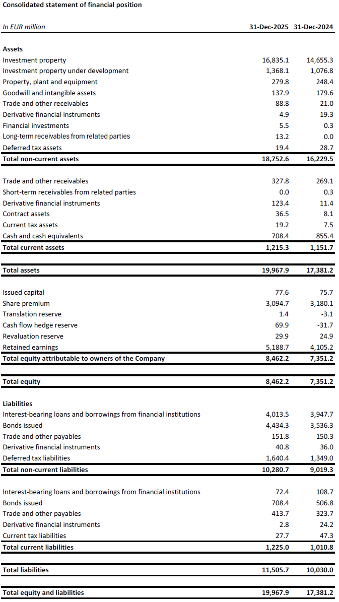 Investment Property (“IP”) valuation increased from €14.7 billion as at 31 December 2024 to €16.8 billion as at 31 December 2025, driven by the transfer of completed projects from Investment Property under Development (“IPuD”) to IP and positive revaluation of standing portfolio.