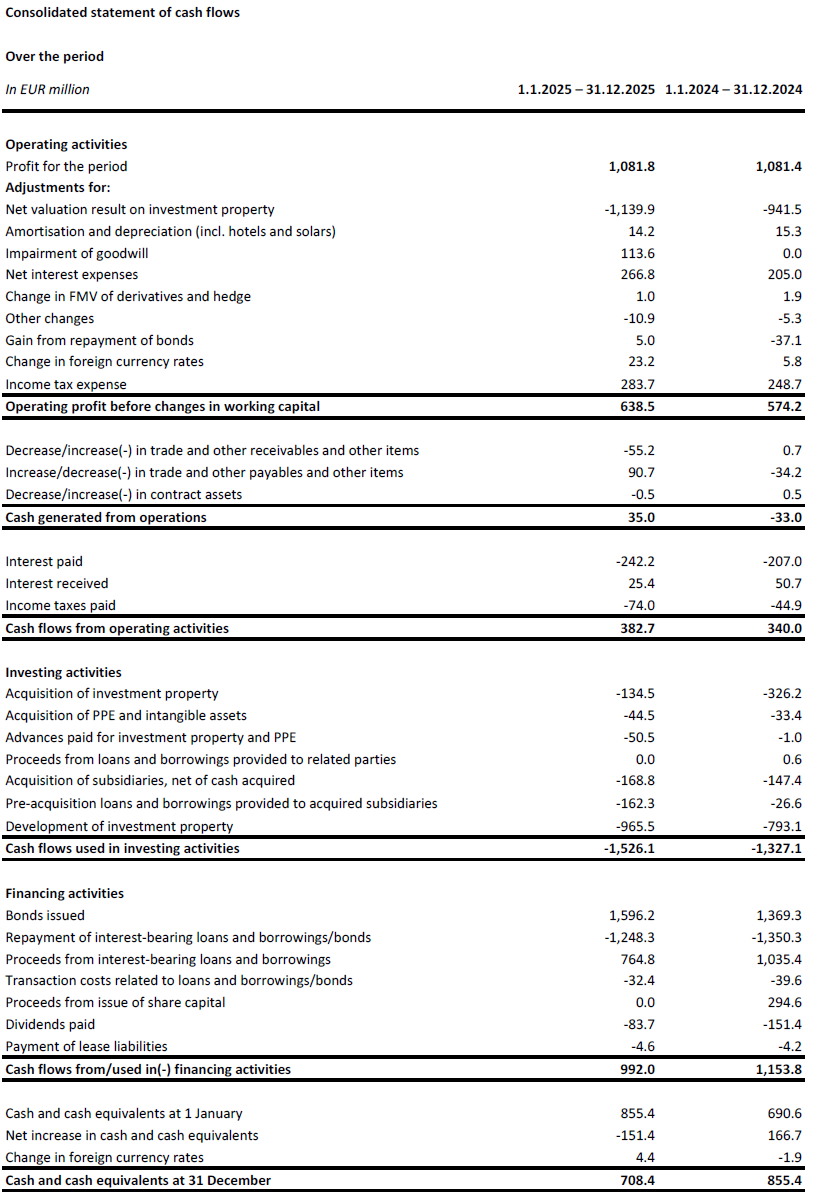 CTP proposes a final 2025 dividend of €0.32 per ordinary share, which will, subject to approval by the AGM, be paid on 12 June 2026. This will bring the total 2025 dividend to €0.63 per ordinary share, which represents a Company specific adjusted EPRA EPS pay-out of 74% – in line with the Group’s dividend policy to pay-out 70%-80% – and growth of 6.8% compared to 2024. For 2026, the dividend payout ratio range remains unchanged. The default dividend is scrip, but shareholders can opt for payment of the dividend in cash.